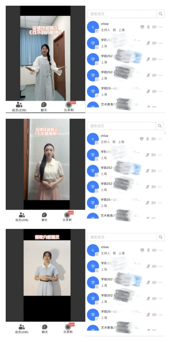 为充分发挥优秀学子的榜样示范作用,深化学生对专业核心技能的理解,激发学习热情,在本次实践周中,我校学前教育专业特别组织了一场别开生面的“上海市师范生基本功大赛优秀成果展示观摩活动”。活动邀请在刚结束的上海市教学技能大赛中斩获佳绩的三位同学进行成果展示,三位同学将她们在大赛中沉淀的宝贵经验与精湛技艺毫无保留地进行了分享,面向全体大一、大二、大三及专升本学生,带来了一场关于教学智慧与专业素养的视听盛宴。本次活动在副院长李乐影、颜彦的关心指导下,由系主任李佳颖、专业教师徐婉赢具体组织,确保了活动顺利开展并取得良好成效。