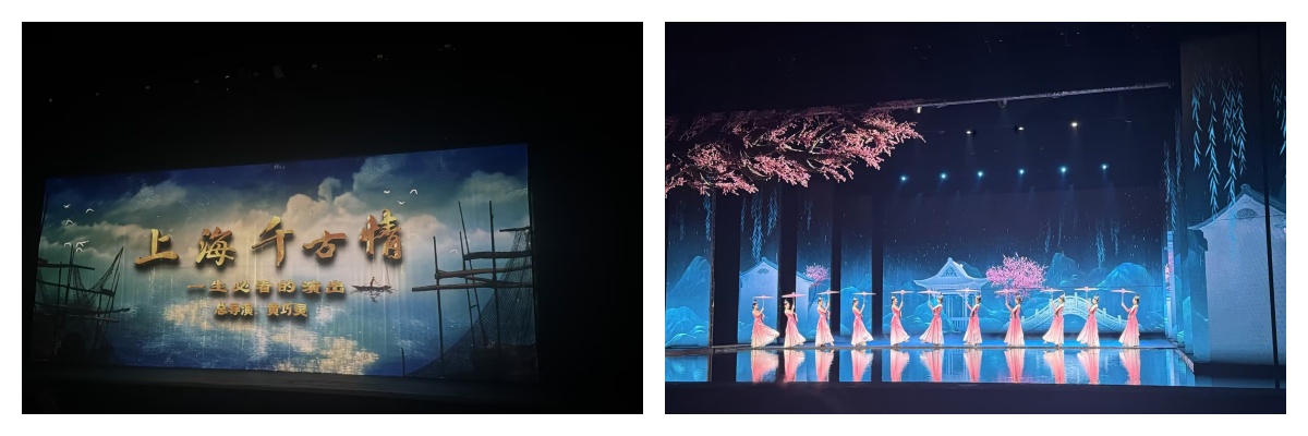 本次活动的核心环节是观看大型歌舞《上海千古情》演出。整场演出以恢弘的叙事结构、精湛的艺术演绎,结合高科技舞台机械与数字追踪、虚实双生等新视觉技术,完整呈现了上海从远古溯源到新时代崛起的壮阔历程——从春申君疏浚黄浦江的历史开端,到江南水乡的婉约缱绻;从十里洋场的风云跌宕,到战火纷飞的峥嵘岁月;从觉醒年代的理想热血,到新中国成立的光明曙光,每一幕都扣人心弦、引人深思。演出将上海的红色文化、海派文化、江南文化展现得淋漓尽致,既有视觉上的震撼,更有精神上的洗礼。